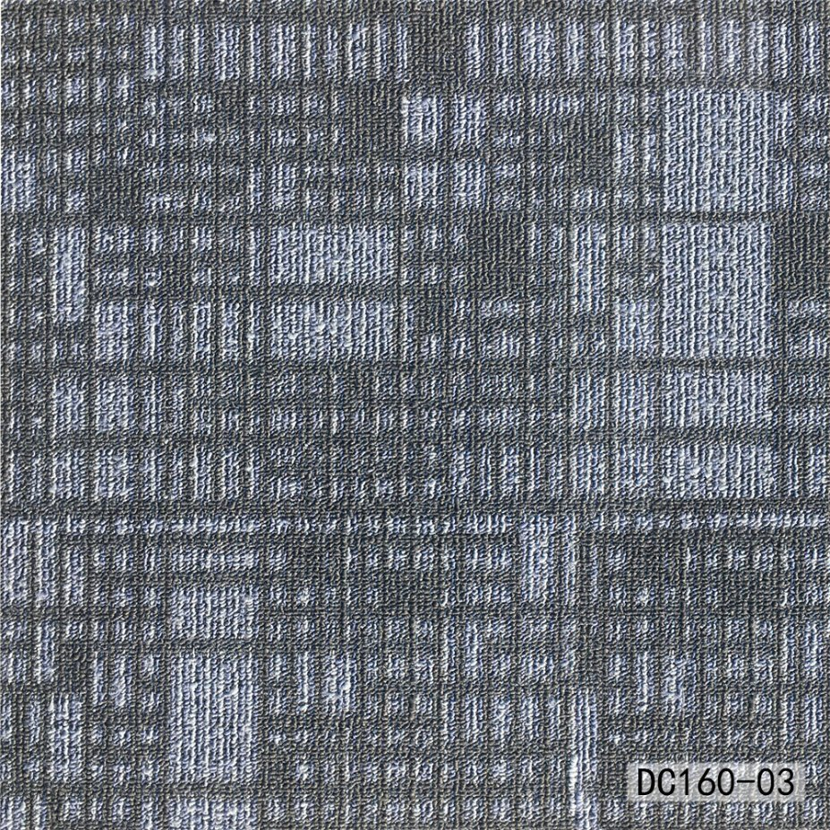 Product Specification:Style:DC160Construction:Multi-level LoopFace Fiber:PPBacking Material:Fine Bitumen+Thick NonwovensGauge:1/12Pile Height:4/3/2mmPile Weight:550±20g /m2Tile Size:50cm×50cm/pcProduct Exhibition:Factory Profile:Factory Advantages:Certificates:Packing and Delive......